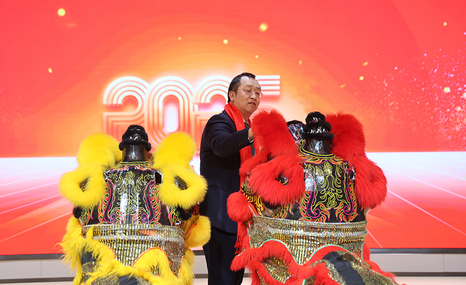 隨后,醒獅點(diǎn)睛儀式將大會(huì)氛圍推向高點(diǎn)。季國祥總裁為舞獅點(diǎn)睛,為公司送上美好祝福。點(diǎn)睛后的獅子帶著滿滿的祥瑞之氣,祝福中集環(huán)科在新的一年虎虎生威、事業(yè)興旺、宏圖大展。